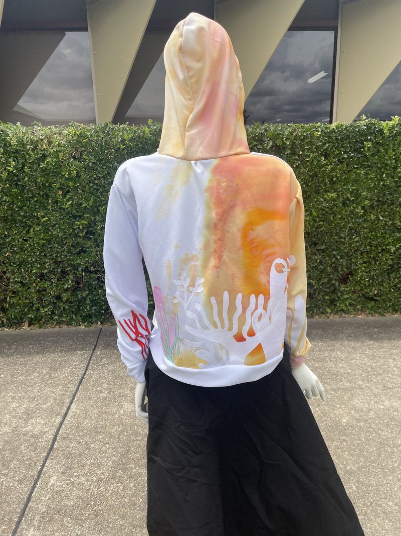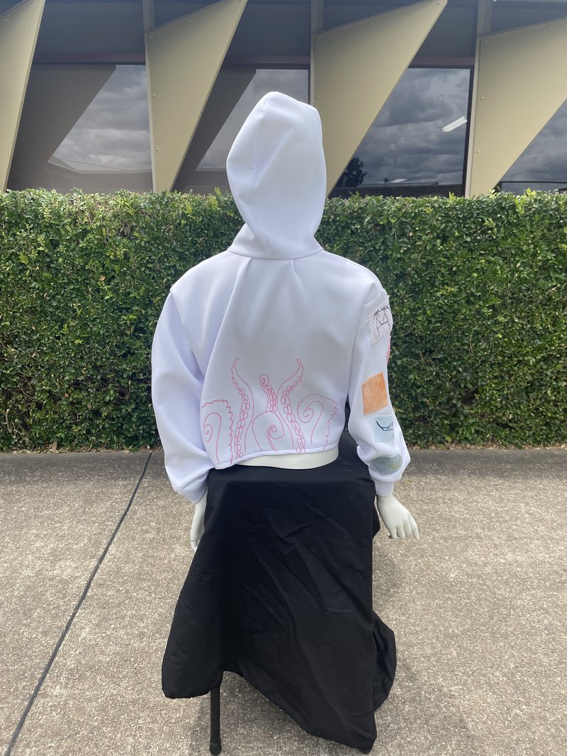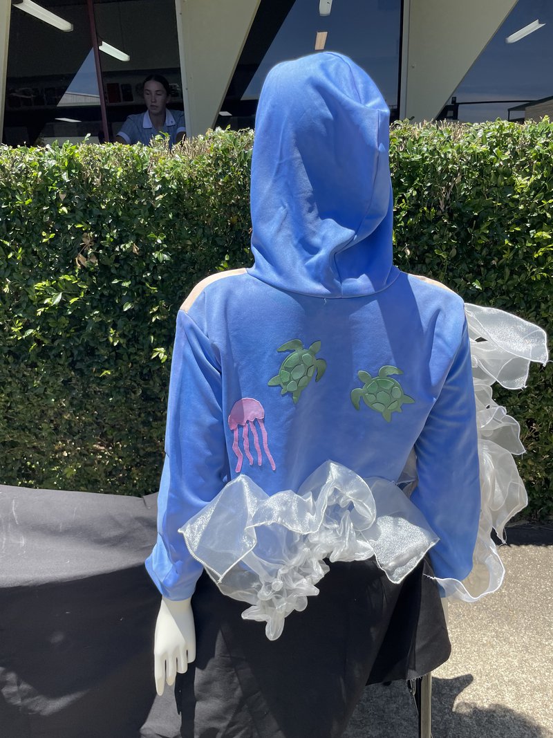 Year 9 Textiles students completed their scuba-fabric hoodies, each inspired by an environmental issue that matters to their generation. They explored a wide range of decorative techniques to bring their concepts to life, including laser cutting, fabric dyeing, marbling, embroidery, fabric manipulation, solvy work and screen printing. Students were proud of their finished hoodies and the way their designs communicated a meaningful message through textile art.