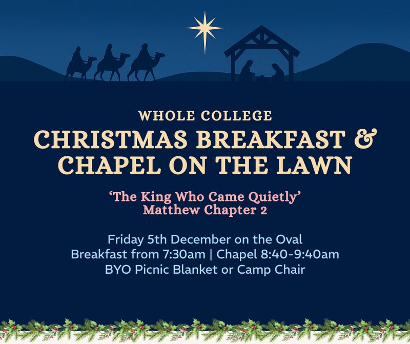 Please join us for our annual Christmas Chapel on the Oval on 5 December.
