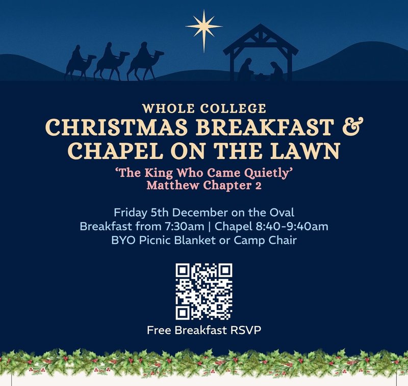 - Christmas Chapel on the lawn - Friday 5 December, 7:30am on the Oval
