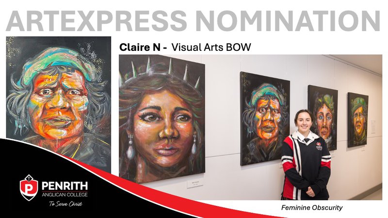 Congratulations to our talented Visual Arts Class of 2025! We’re thrilled to celebrate Montana B., Colby C., Zoe H., Claire N., and Sara W., who have been nominated for possible inclusion in ARTEXPRESS — the prestigious annual showcase of outstanding HSC Visual Arts works, to be exhibited across NSW in 2026.