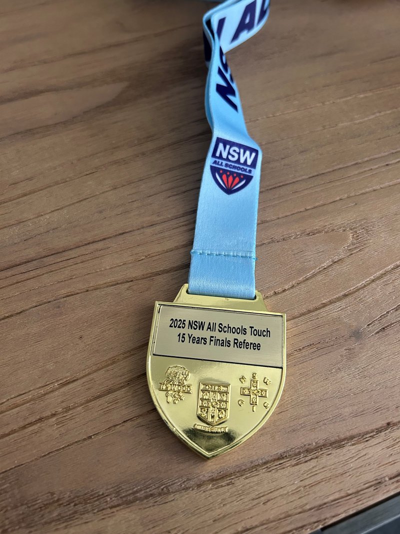 Jayden B (Year 12) recently returned from the School Sport Australia Touch Football Tournament in Ballarat, where he served as a senior referee. Despite the classic Victorian mix of freezing rain, mud, and sunshine, he performed exceptionally—travelling briefly to Moama to complete an HSC exam before rejoining the competition.