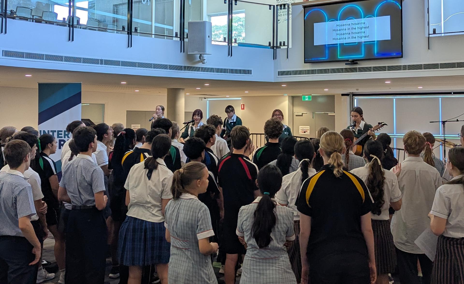 On Thursday 5 March, students joined with other schools at Norwest Christian College to sing God's praises, play some games (Daniel H won the scavenger challenge), and hear students talk about the difference Jesus has made in their lives. The Bible focus was from Matthew 9:35-38 and we got to think about the big question: "What do you care about?". We also used the bus trip for a joyous singalong. The testimony and interview mentioned the significance of Kyck - another great opportunity for our Secondary students to come together with others at the end of Week 1, Term 2. It's not too late to encourage your secondary student to sign up to come! Click here to book online.