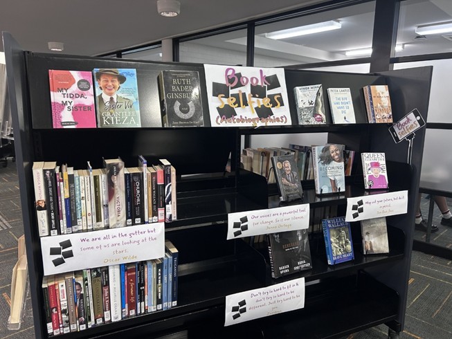 Another display that the College has in G Library at present is entitled: Book Selfies. This display highlights our collection of Biographies and Autobiographies whilst encouraging our students to read something new.