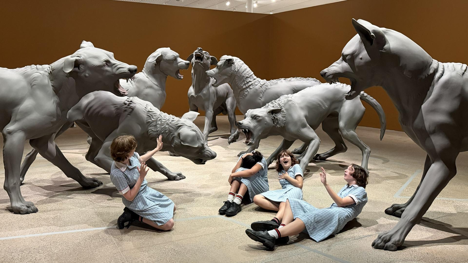 At the Art Gallery of NSW students viewed the powerful Ron Mueck exhibition. Mueck’s hyper‑realistic sculptures, ranging from monumental to intimate in scale, invite viewers to reflect deeply on human experience. Themes of birth, mortality, isolation, connection, and vulnerability are explored through his meticulously crafted figures, prompting thoughtful discussion and close visual analysis.