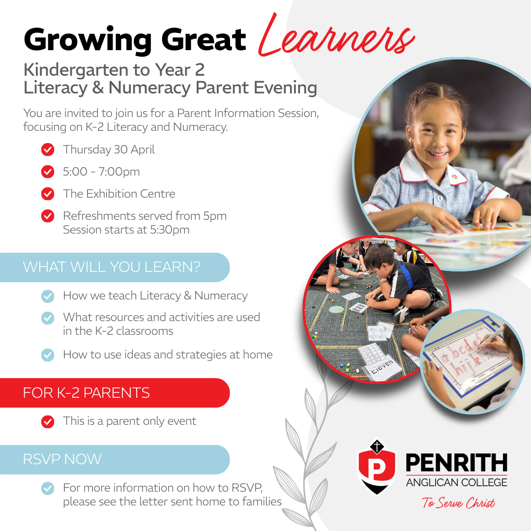 Kindergarten to Year 2 Parents are invited to join us for a Parent Information Session, focusing on K-2 Literacy and Numeracy.