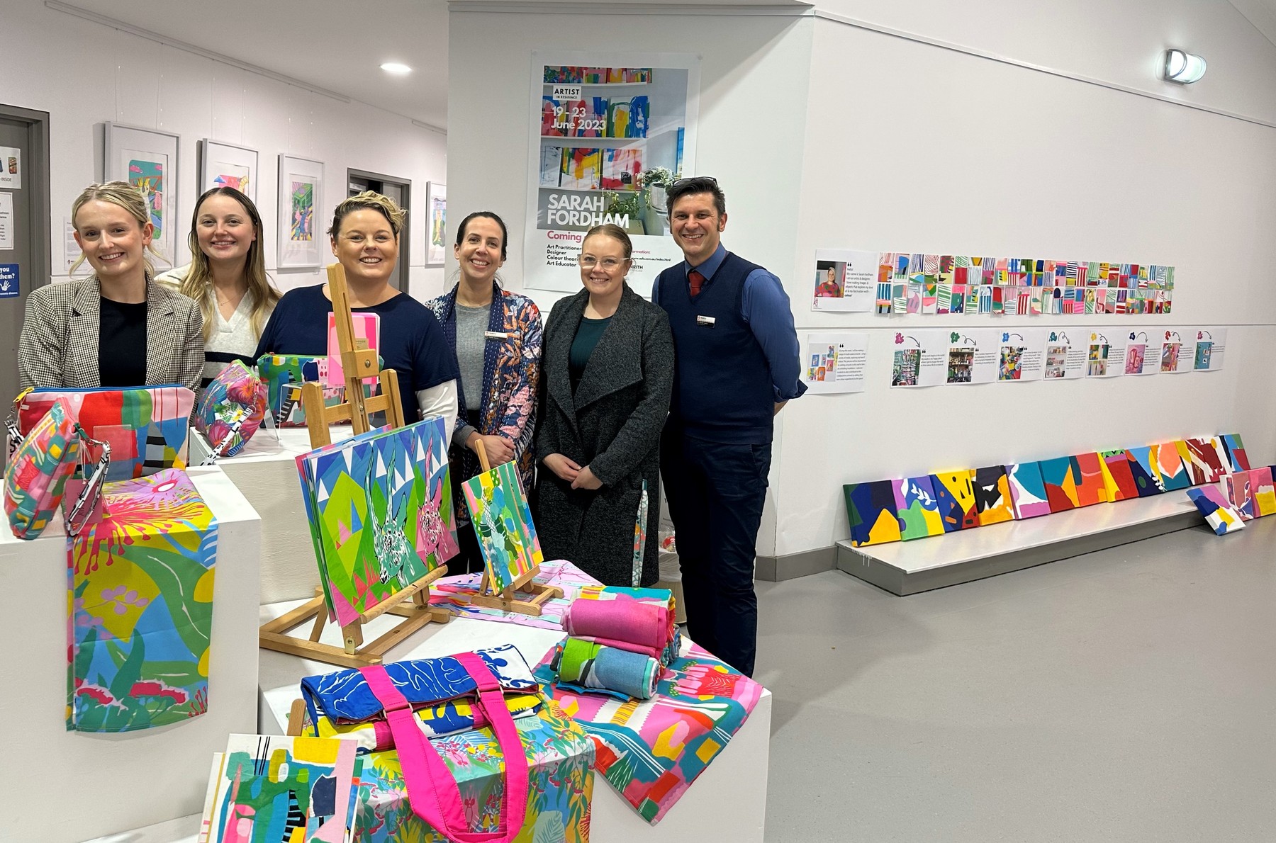 The week commenced with a meet the artist talk in the Lighthouse Theatre with all Year 7, 8 and Year 9 Visual Arts students learning about Sarah’s art practice. Sarah shared her experiences in developing her painting practice into the design, transforming her artworks into packaging and motifs for companies such as Frank Green and Glasshouse Fragrances.